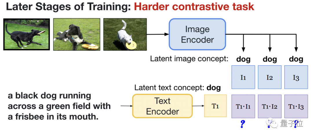 但当对小批样进行采样时,会抓取到很多画面中有狗的相似图片,因此仅靠识别图片中是否有狗已经不能解决问题了,该模型必须共享上下文级信息的语言和视觉表示,从而产生更细粒度的对齐。