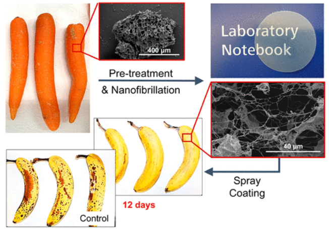 利用胡萝卜渣以及蔬菜渣成功生产出了经济实惠的原纤化纤维素纳米纤维,并将其制备成了一种特殊的喷雾。