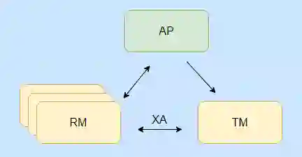 简单的说就是 AP 通过 TM 来定义事务操作,TM 和 RM 之间会通过 XA 规范进行通信,执行两阶段提交,而 AP 的资源是从 RM 拿的。