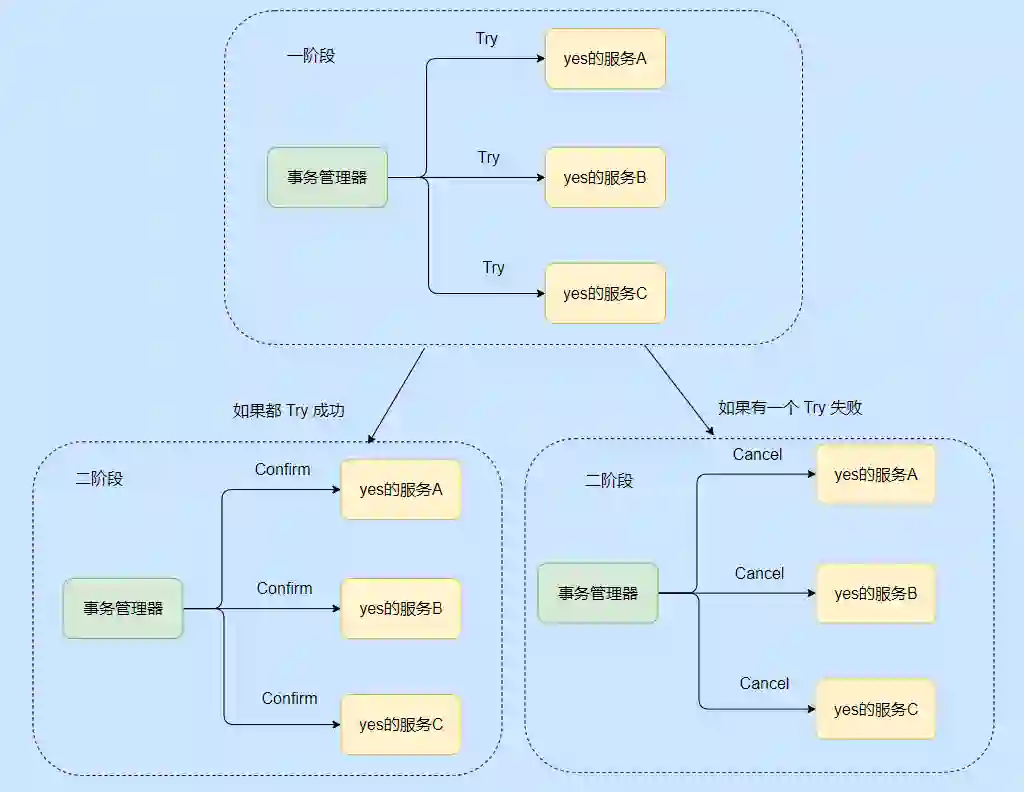 这里有人说那要是所有人 Try 都成功了,都执行 Comfirm 了,但是个别 Confirm 失败了怎么办?