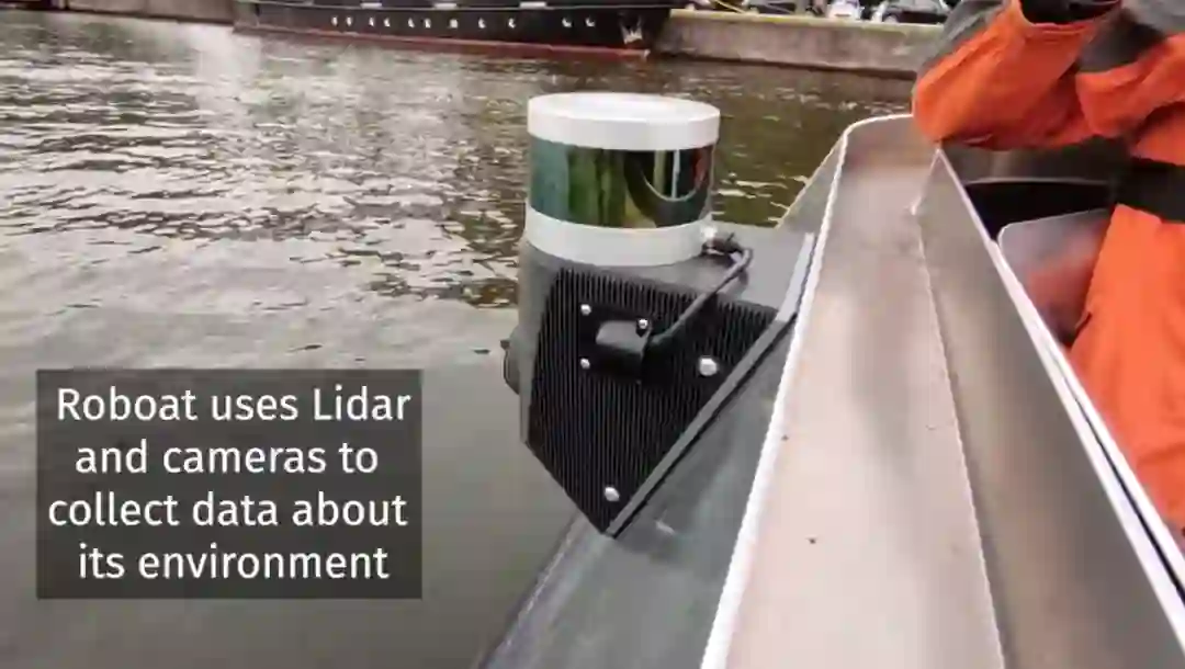为了自主确定自由路径并避免撞到物体,Roboat 使用激光雷达和多个摄像头来实现 360 度视图。这组传感器被称为“感知套件”,可让 Roboat 了解其周围环境。例如,当感知捡到一个看不见的物体(例如独木舟)时,算法会将物品标记为“未知”。当团队稍后查看当天收集的数据时,该对象将被手动选择并可以标记为“独木舟”。