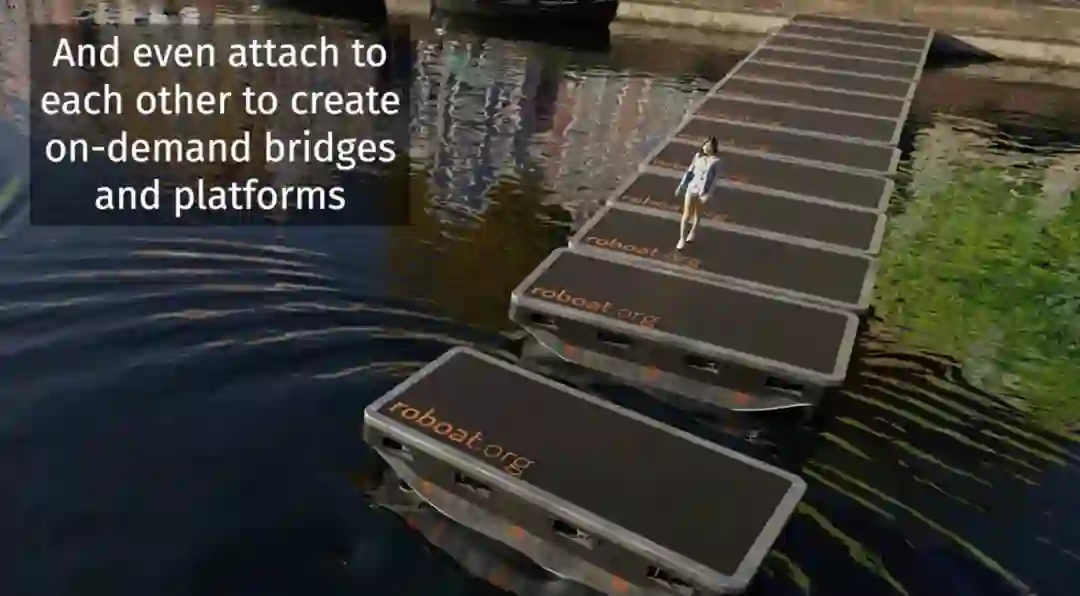 “该系统允许 Roboat 连接到其他自动驾驶船只和停靠站,形成临时桥梁,以缓解交通,或者是浮动舞台或者小广场,这在上一代设计中是不可能的。”麻省理工学院城市研究与规划系 (DUSP) 和可感知城市实验室主任 Carlo Ratti 教授表示。