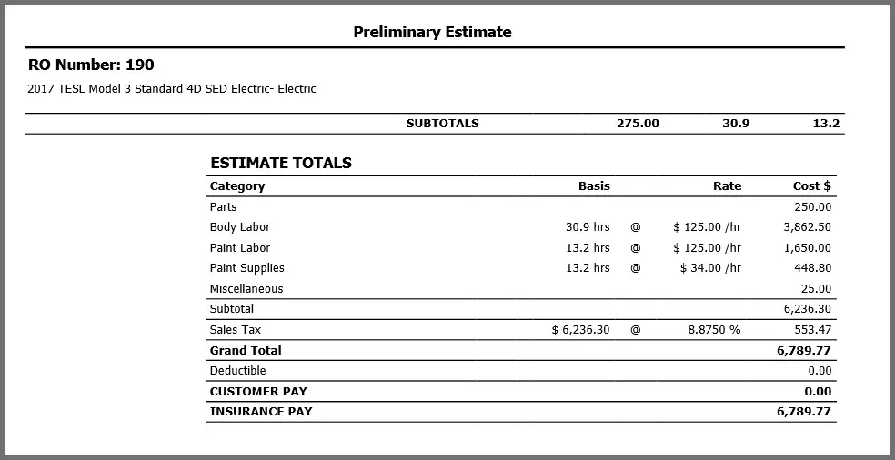 外媒Clean Technica也曾报道过一位纽约车主的类似经历。该车主在挪车时将Model 3划出了一道约10cm的凹痕,车辆的损伤情况并不算严重。不过,特斯拉授权维修店却给出了6789.77美元(约合人民币4.29万元)的维修报价。
