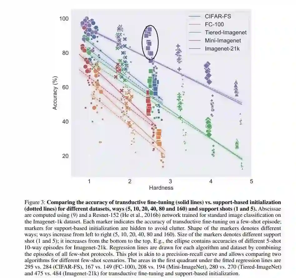 作者发现使用大量的元训练类,即使对于大量的测试类,也能获得极高的准确率。作者不提倡他们的方法作为小样本学习的解决方案,而只是使用结果突出显示当前基准和小样本学习的局限性。作者对基准数据集进行了广泛的研究,以提出量化测试集“硬度”的指标。此度量标准可用于以更系统的方式说明小样本学习算法的性能。