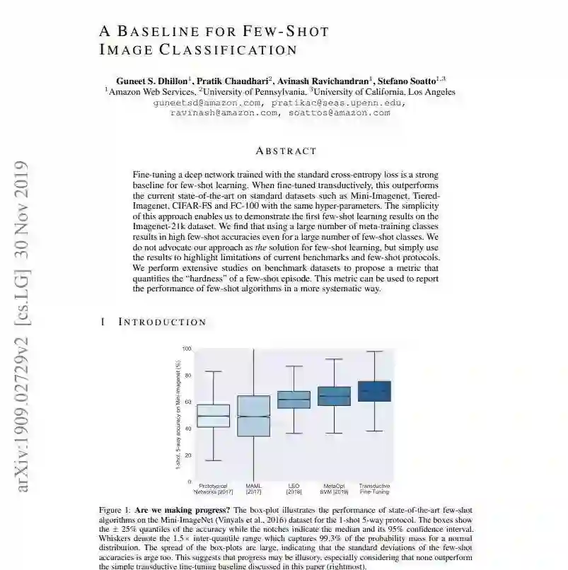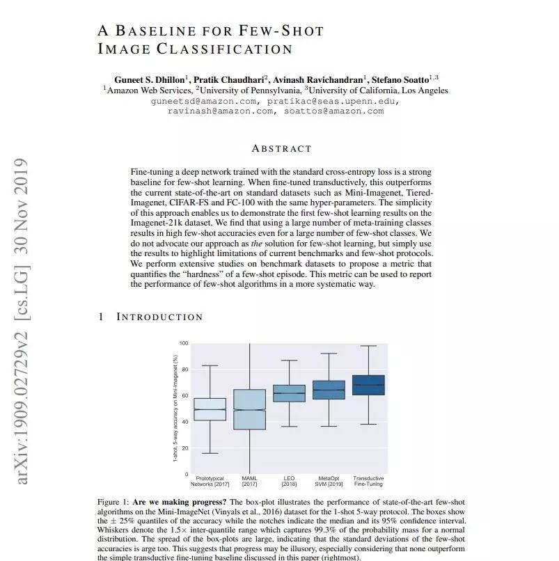 推荐理由:对经过标准交叉熵损失训练的深度网络进行微调是进行小样本学习的一个强基准。如果对它们进行传导性微调,它的性能将优于标准数据集(如Mini-Imagenet,Tiered-Imagenet,CIFAR-FS和FC-100)中具有相同超参数的最新技术。