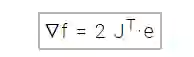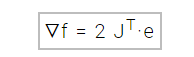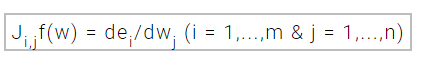 我们可以定义损失函数的雅可比矩阵以误差对参数的偏导数为元素,如下方程式所示: