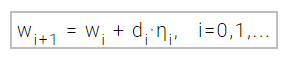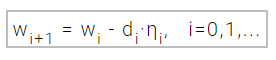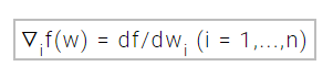 如果我们指定 f(wi)= fi、ᐁf(wi)= gi,那么该优化方法由点 w0 开始迭代,在满足终止条件之前,就在训练方向 di=-gi 上将 wi 移向 wi+1。因此,梯度下降法就是如下方程式进行迭代。