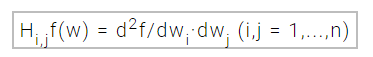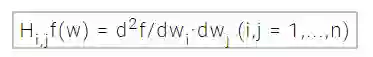 同样,损失函数的二阶偏导可以使用海塞矩阵(Hessian matrix)来表示,以下就是损失函数对权重向量每个元素的二阶偏导数: