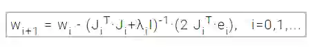 下面的表达式定义了 Levenberg-Marquardt 算法中参数的更新和优化过程:
