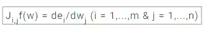 其中 m 是数据集样本的数量,n 是神经网络的参数数量。那么雅可比矩阵就是 m×n 阶矩阵。