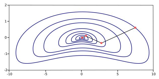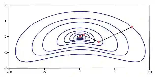 共轭梯度法可认为是梯度下降法和牛顿法的中间物。该算法希望能加速梯度下降的收敛速度,同时避免使用海塞矩阵进行求值、储存和求逆获得必要的优化信息。