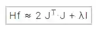 其中λ为衰减因子,它确保了海塞矩阵的正定性(positiveness),I 是单位矩阵。