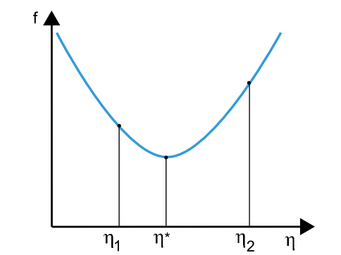 点η1 和点η2 定义了包含单变量函数 f(η)最优点η*的子区间