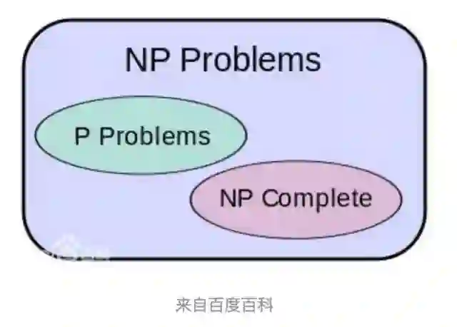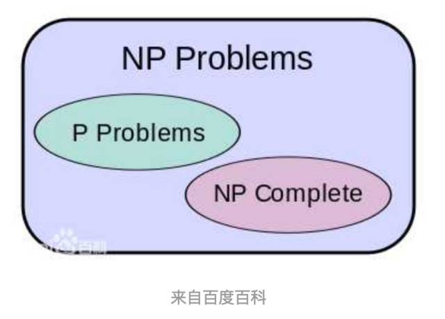 NP问题:简单的说,存在多项式时间的算法的一类问题,称之为P类问题;在多项式时间内可由非确定机解决的一类问题,称之为NP问题。另外,很多人相信P类问题是NP问题的一个子集,但既没有人证明出有某个问题属于NP但不属于P,也没有人证明所有NP问题都能在多项式时间内有解,如图: