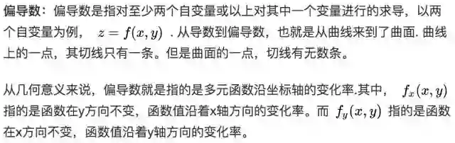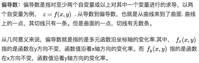 注意:在一元函数中,只有一个自变量变动,也就是说只存在一个方向的变化率,这也就是为什么一元函数没有偏导数的原因。