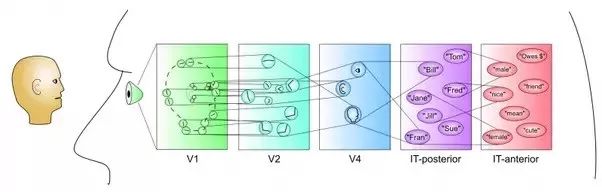 这一系统可以解释为分层的神经元组,检测输入刺激的低层特性,并互相交流,以发展对目标的高层检测。