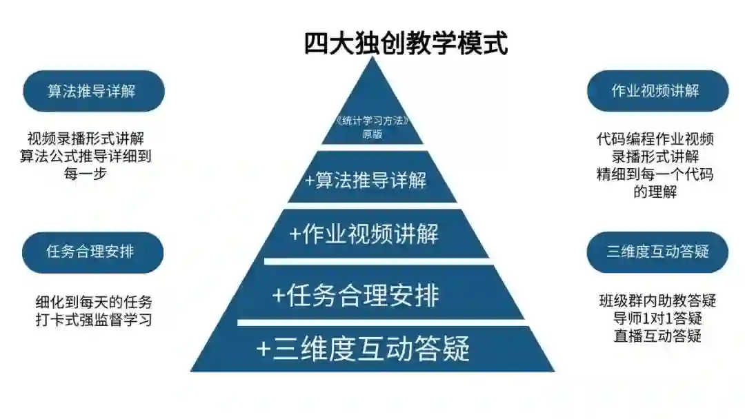 所以,我们针对很多想学好机器学习的学员,遇到的这些困难,精心准备了一场集算法推导视频+作业讲解视频+教学指导为一体的李航《统计学习方法》训练营!