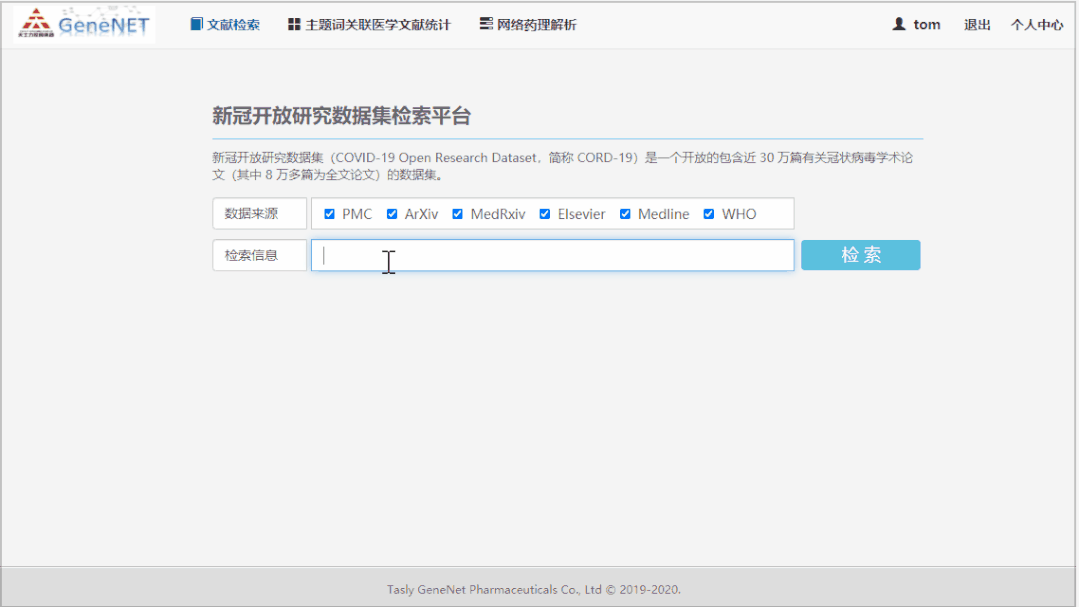 :团队在生物信息端已经开发了针对人类基因进行去歧义和标准化的 GeneBook 工具(2019SR0589834)及相应数据库、针对中药相关的植物与成分等信息的 CloudPhar 云平台中药数据库(http://cloud.tasly.com/#/tcm/home,目前世界信息最全的中药数据库,投稿中)、针对化学分子的去歧义和标准化工具(主要基于 PubChem 公共数据库)。同时,团队也使用一些公共或权威的数据库,例如 MalaCards 的疾病数据库、DrugBank 的药物数据库等。