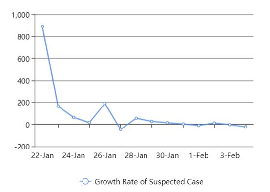 作者收集了1月22日到2月4日这七天的数据。数据显示,感染病例在持续增加,且没有任何放缓迹象。但是,疑似感染病例数在稳步下降。这表明,在疑似病例被确诊之后,其总数也在持续减少。