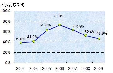 2003-2009诺基亚全球市场份额