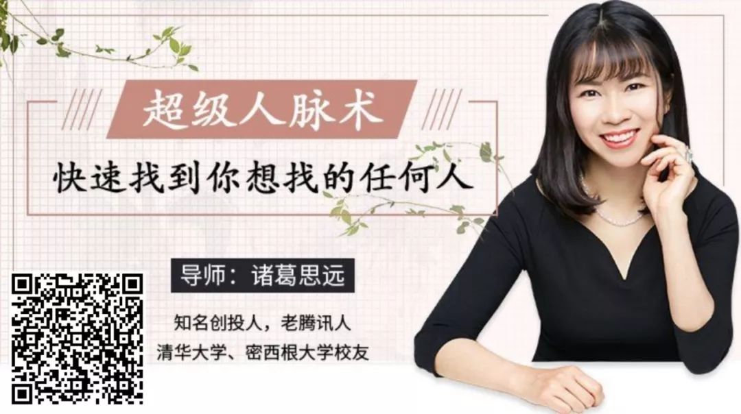 目前诸葛思远已经为近2000人分享过自己的独家“找人“”方法,其中包括名校学生、创业公司高管、媒体人,甚至私人银行家、基金合伙人等等,来自不同行业的学员几乎都从她的这套方法种获得了帮助。