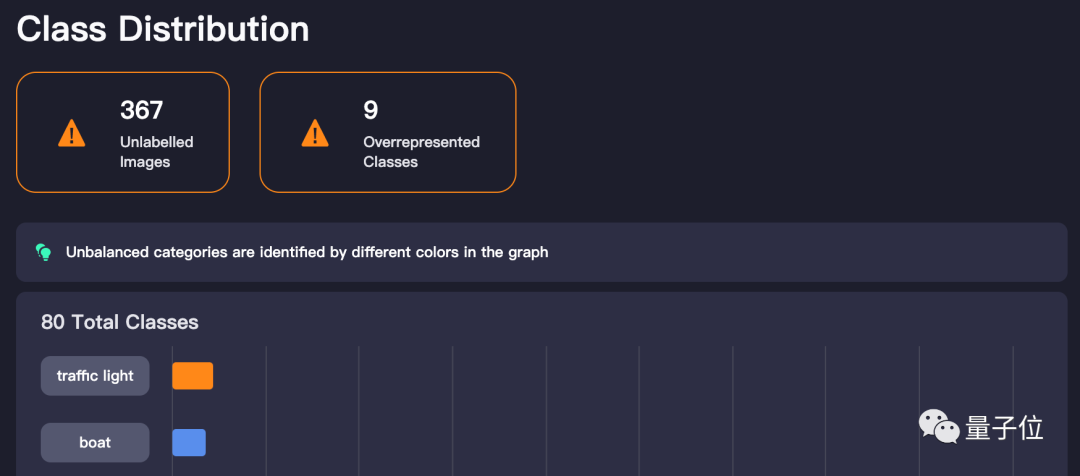 在「类别分布」这一板块,首先会提示,没有标签、标签过多的图像数量。