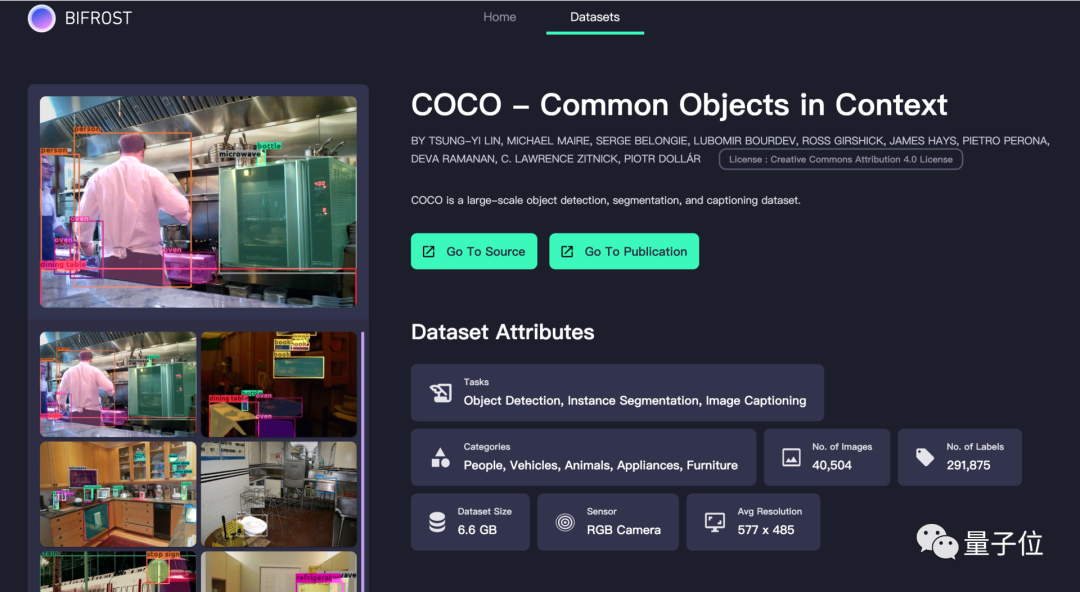 这个项目名叫BIFROST,一个数据集搜索工具,里面共有1899个图像数据集,还专门设置分类,比如Humans、Geospatial、Autonomous Cars等。