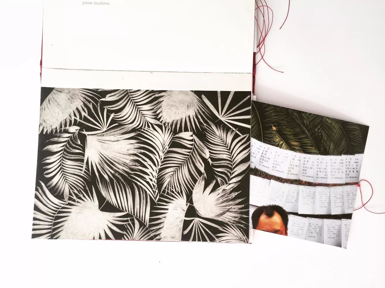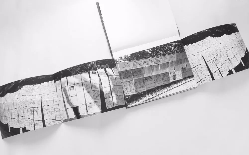 所以后来在展示这些照片的时候,我特意用了一些红绳、夹子,我想让看到这些照片的人能够感受到那种被拉扯、疼痛的感觉。在我自己做的手工书里,我还把相亲主题的照片藏在了人民公园的抽象风景照背后。抽出风景照背后的红绳,你就可以看到藏在夹页中的相亲的照片——这是一种恬静的感觉和残酷现实的对比。