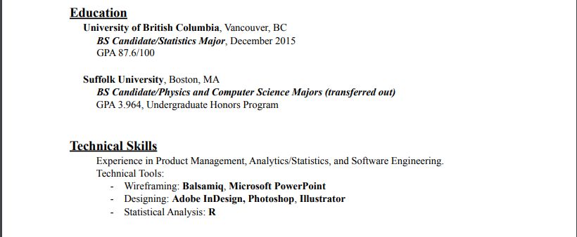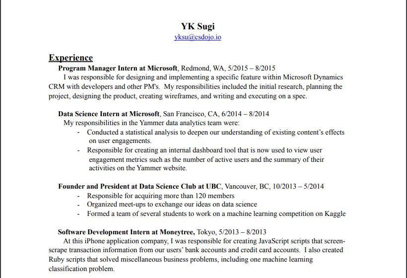 这是我过去申请Google的软件工程师时,使用的简历。它应该只有一页,所以我会说我的简历太长了。仅作参考吧。
