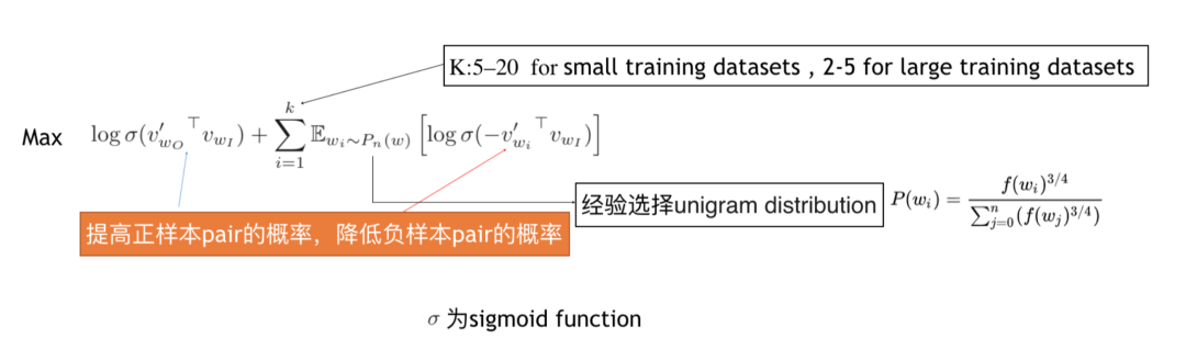 原论文中并没有给出负例采样的推导过程,2014年,Yoav Goldberg在论文《word2vec Explained: Deriving Mikolov et al.’s Negative-Sampling Word-Embedding Method》里对上述目标函数给出了推导。