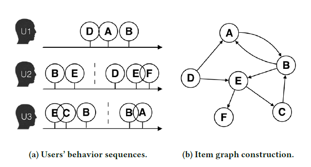 上图中展示的是阿里在淘宝上的DeepWalk的过程,在传统DeepWalk的基础上,阿里的还应用了会话切分和加权边,具体过程如下[^7]: