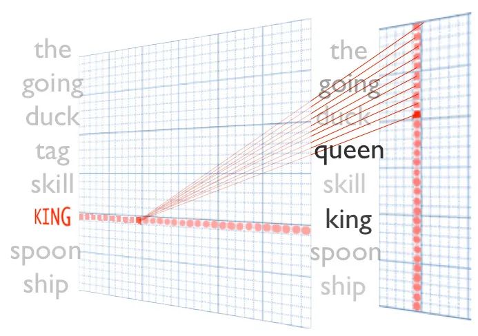 本质上来说,经过「Word Embedding」之后,各个单词就组合成了一个相对低维空间上的一组向量,这些向量之间的远近关系则由他们之间的语义关系决定。