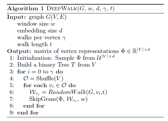 随机游走是一种路径搜索算法,用来从图上获得一条随机的路径。从一个节点开始,随机沿着一条边正向或者反向寻找到它的邻居,以此类推,直到达到设置的路径长度。不难发现随机游走有两个关键步骤,第一,起始节点的选择;第二,下一跳节点的选择。