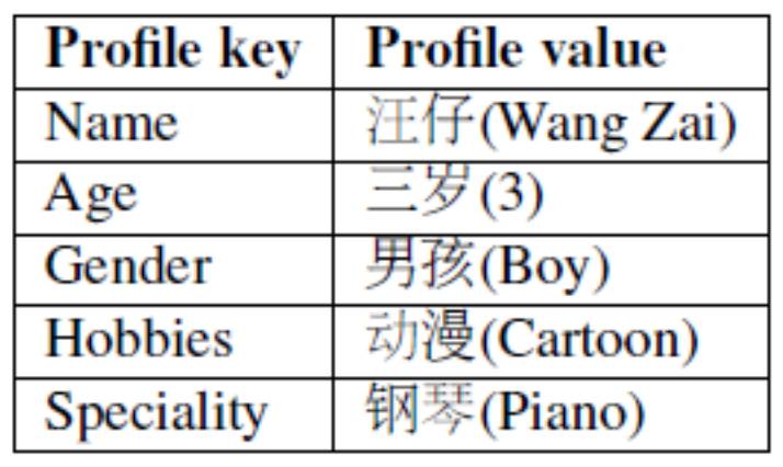 我们一起来看看这篇文章:首先,此文为闲聊机器人设定了固定的属性,包括但不限于姓名、性别、爱好等。这些属性被整理为 <Key, Value> 的形式,当机器人被问及与自身属性相关的问题时,应生成与自身属性相一致的回复。如下图所示:此文为 chatbot 设定为一个名叫汪仔的三岁男孩,他热爱动漫,特长是弹钢琴。