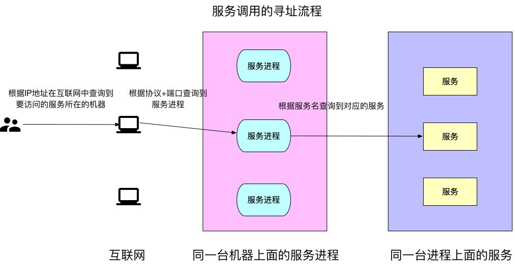 地址:调用方根据地址访问到网络接口。地址包括以下要素:IP地址、服务端口、服务协议(TCP、UDP,etc)。