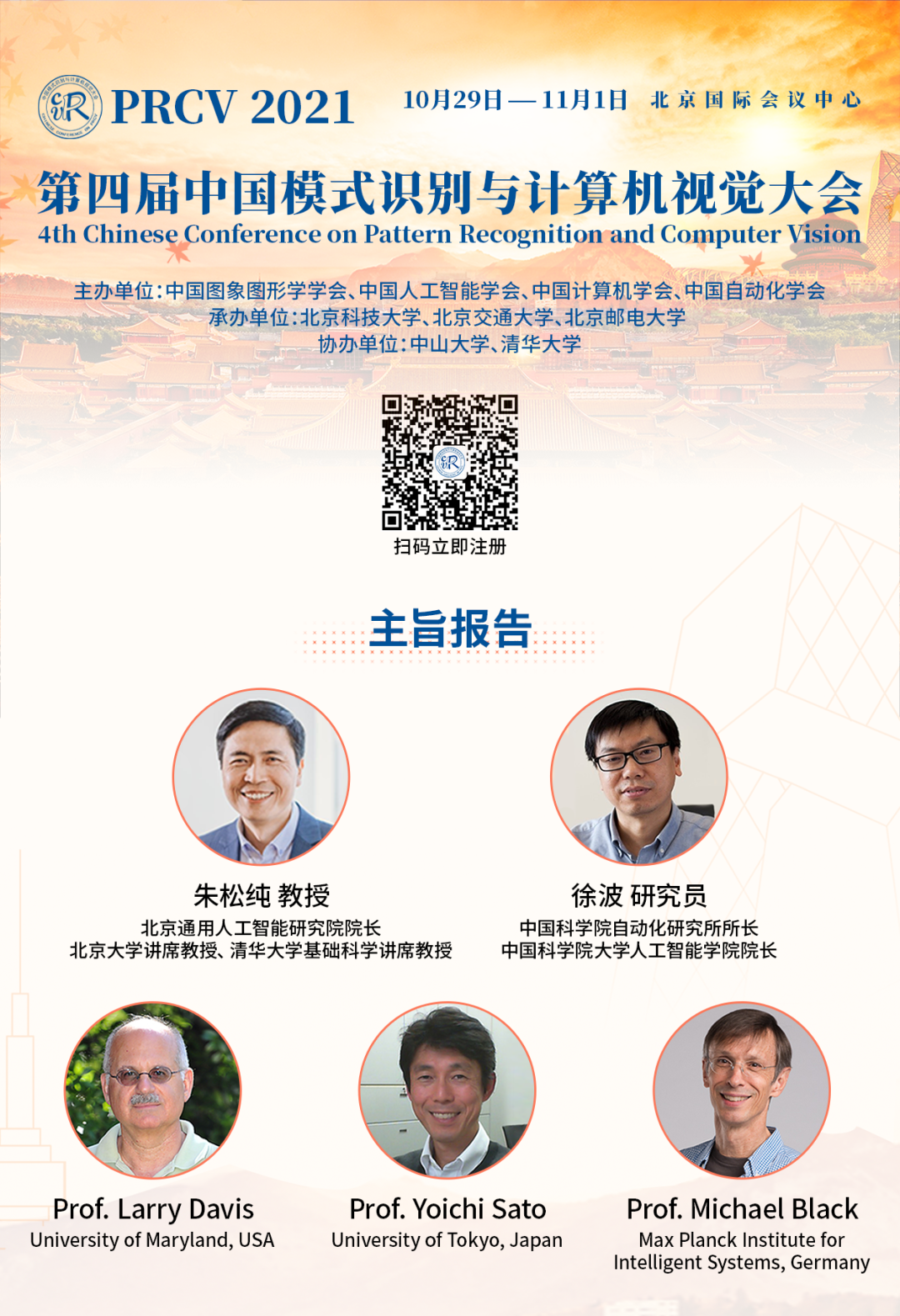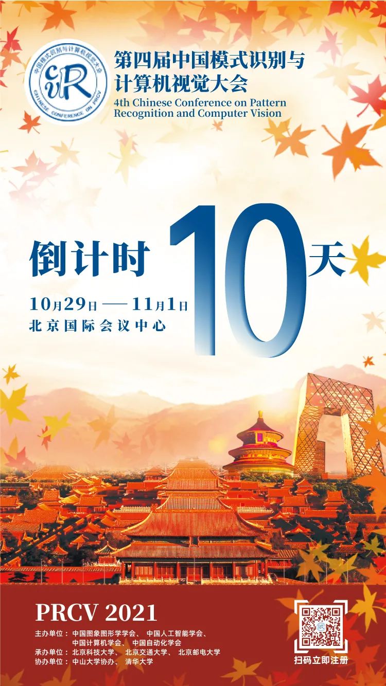 第四届中国模式识别与计算机视觉大会(PRCV2021)将于2021年10月29日至11月1日在北京国际会议中心举行。