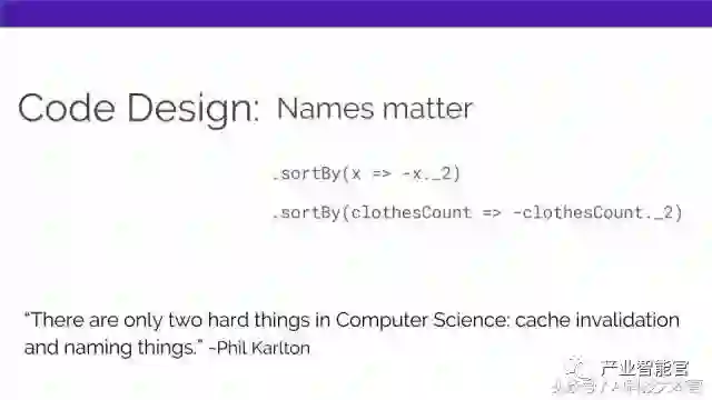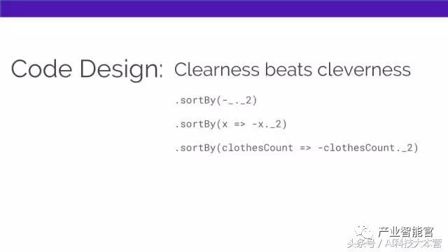 在上面的Scala示例中,第一行显示了使用简写语法的sortBy方法。虽然简明扼要,但很难想象下划线代表什么。虽然这是许多人在匿名函数中表示参数名称的常见模式,但对于不太高级的开发人员(或者当你过了一段时间再看你的代码)时,搞明白代码到底代表什么的做法就变得很头痛了。