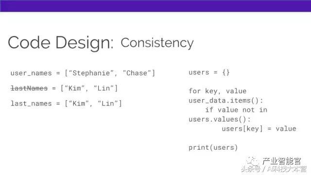 保持代码样式一致,与刚刚我们说的保持命名约定一样重要。要获得一些基本的风格点,你应该坚持一种情况,不要在同一个脚本中混合使用驼峰式大小写和snake的命名规范,否则的话,你的代码很快就会变得难以阅读和浏览。另一种你应该保持一致的方法是同一种任务要坚持使用相同方法。例如,要从字典中删除重复项,并且需要在代码的好几个位置处执行此操作,那么就不要仅仅因为在Stack Overflow网站上看到过就使用其他创造性的方法来执行操作。使用最清晰和最不聪明的方法来让你的代码和脚本保持一致。并且,我还要再次强调,一致性的目的是为了避免让你自己和其他人混淆,这将有助于你更快地进行调试!(请注意,我们这段话的核心是调试)。