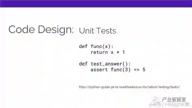 以上示例来自“Hitchhikers Guide to Python”,它使用Python测试库Pytest。