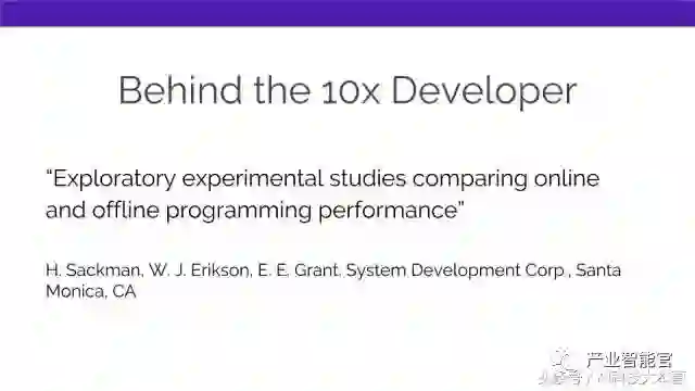 H. Sackman,W. J. Erikson和E. E. Grant在1968年进行了一个叫做“比较在线和离线编程性能的探索性实验研究”的实验,发现程序员在完成写代码的任务上有很大的时间差异。