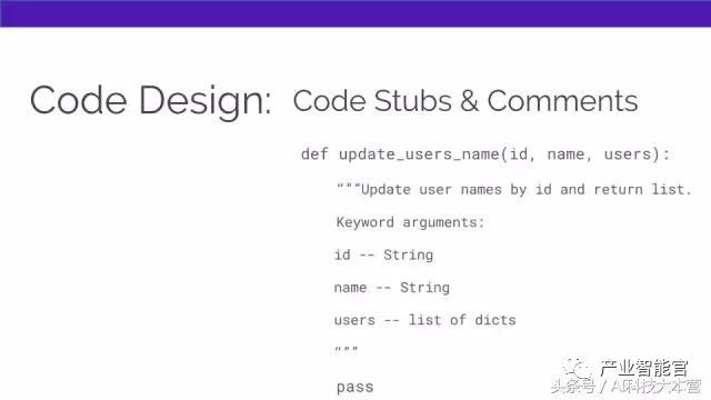 尽管不太常见,但代码设计中很重要的一点是使用桩代码。桩代码是简单的mock类以及函数,可以显示输入,输出和注释,并为代码提供一个大纲。在你开始实际编写代码之前,使用桩代码会让你先考虑代码,并可以帮助你避免怪异的意大利面条式的代码。你会注意到你在编写代码之前有哪些重复的代码,并且会考虑最合适的数据结构。