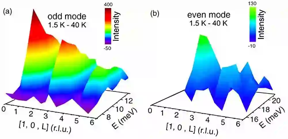 在铁基超导体中,理论上认为超导来自于多个费米面之间的嵌套效应,不同费米面上的能隙符号相反的s±波,库伯对同为自旋单态。因此,原则上在嵌套波矢附近将能观测到自旋共振模,这被诸多实验随后证实。但非常令人困惑的是,铁基超导体中的自旋共振模与铜基高温超导体似乎存在不少差异,且与s±波的理论预言存在很大的出入,比如:它的能量展宽远大于分辨率,在动量空间存在明显的三维特性甚至是严重的色散,在自旋空间因为轨道效应导致部分各向异性,部分样品中共振能量似乎可以超越两倍超导能隙,部分样品中甚至存在双重共振模式。并且,铁基超导自旋共振中奇偶调制模共存现象一直未能被发现,令人怀疑它与铜基超导电性可能有不同微观起源。