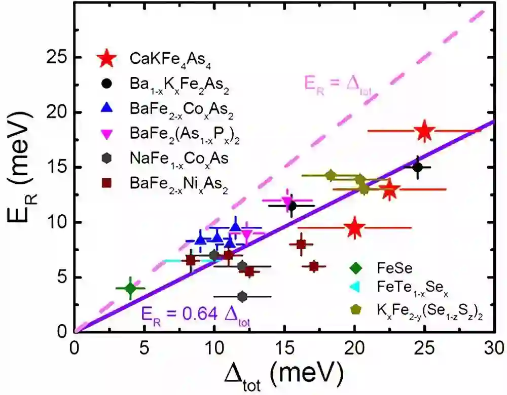图4. 自旋共振能量与超导能隙线性标度关系。