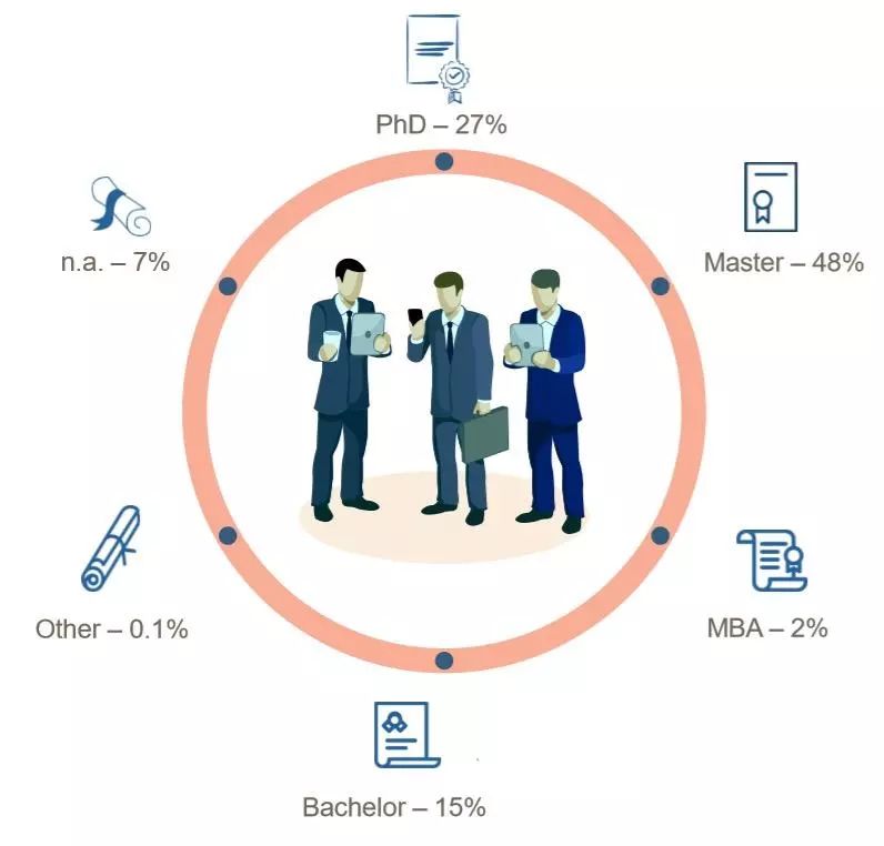 如果能够继续深造,拿到数据科学或机器学习 /AI 相关的硕士或博士学位,自然会助你一臂之力,特别是如果你想在世界 500 强公司里找到一份数据科学家的工作。365 Data Science 研究发现,拥有硕士和博士学位的 1001 数据科学家比例分别是 48% 和 27%。
