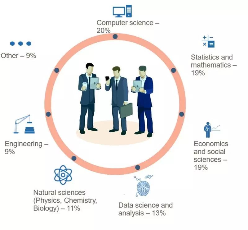 365 Data Science 的研究表明,20% 的数据科学家拥有计算机学位,19% 拥有统计学或数学背景,19% 主攻经济和社会科学专业。只有 13% 拥有存粹的数据科学学位。不过很少有大学提供数据科学本科学位,他们大部分都提供了硕士学位。因为该职业是一个新兴职业,所以毫无疑问,很多人在本科阶段并不会接触到数据科学。