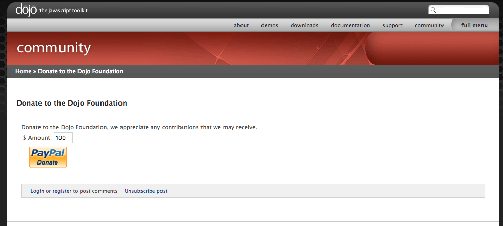 Dojo项目也从差不多那时候开始在网站上设置了捐赠选项。