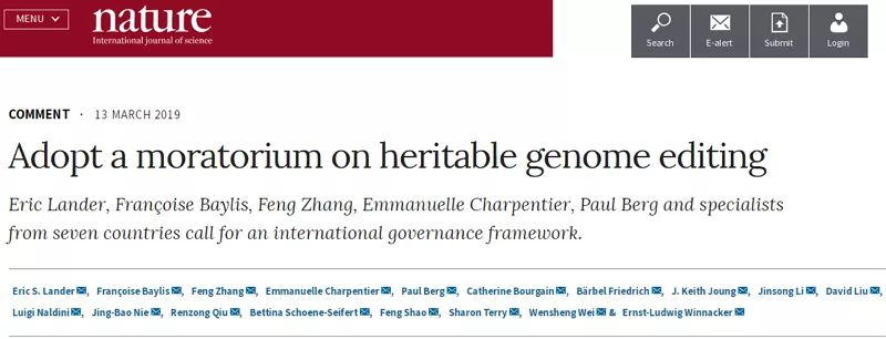 3月14日,18位基因编辑领域的权威学者在《Nature》期刊发表评论,呼吁全球全面暂停针对人类生殖细胞基因编辑的所有临床应用,即可遗传性基因编辑(在精子、卵子或者胚胎上改造并让其在子宫内正常发育)。