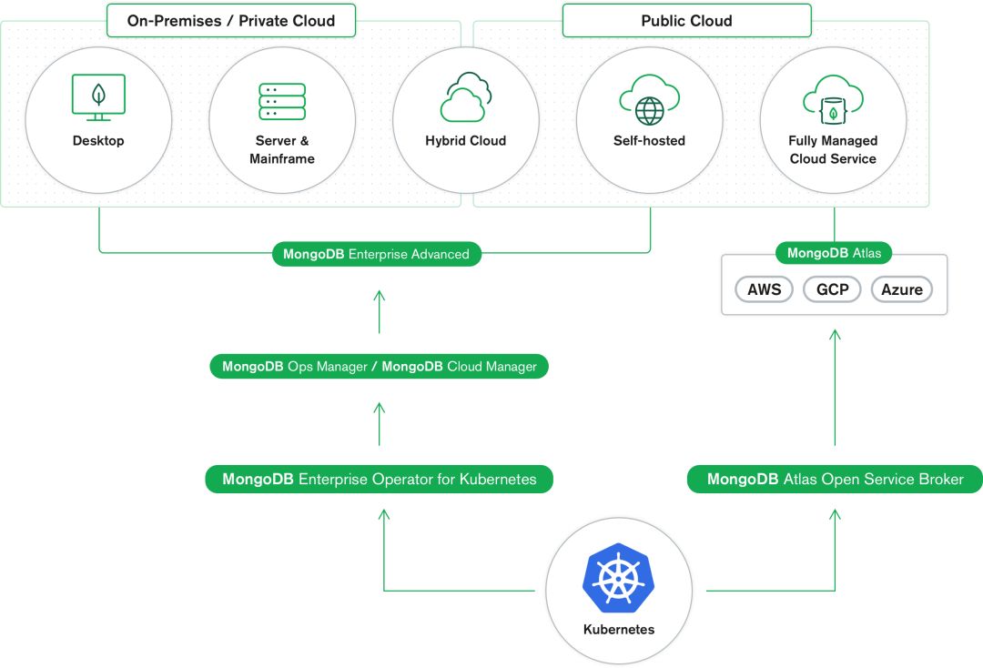 在新版本 MongoDB Atlas(公有云), MongoDB Cloud Manager(私有云企业版管理) 都集成了 Kubernetes operators 的支持,使得用户可以使用 Kubernetes 统一管理 MongoDB 资源。