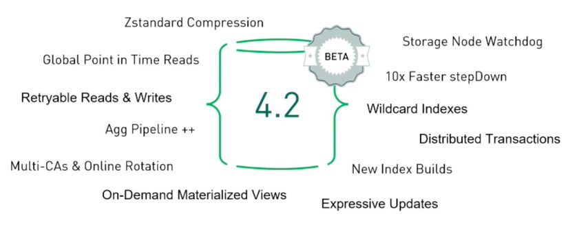 MongoDB 4.2 在查询语言的表达能力上进一步增强,update、aggregation、index 等方面都有巨大的提升,具体细节等 4.2 正式版文档发出可以详细了解。