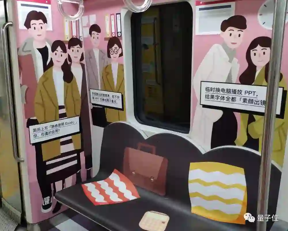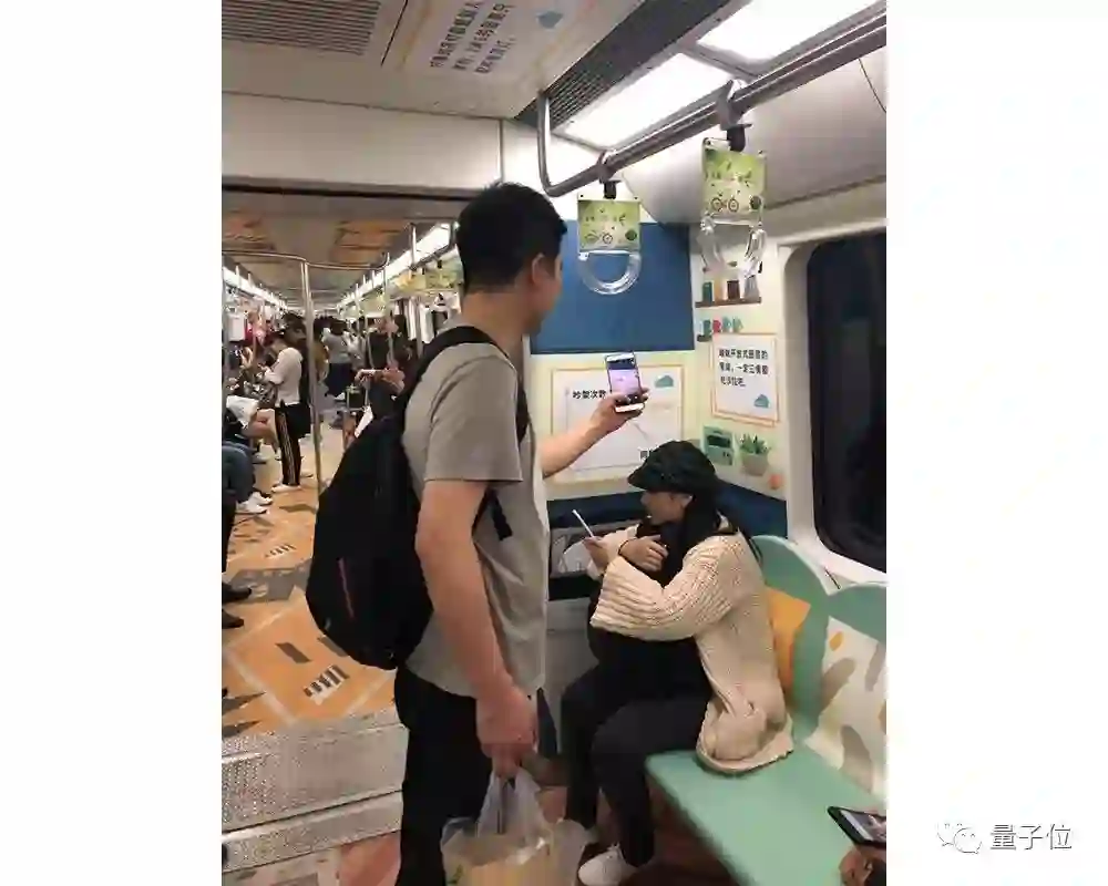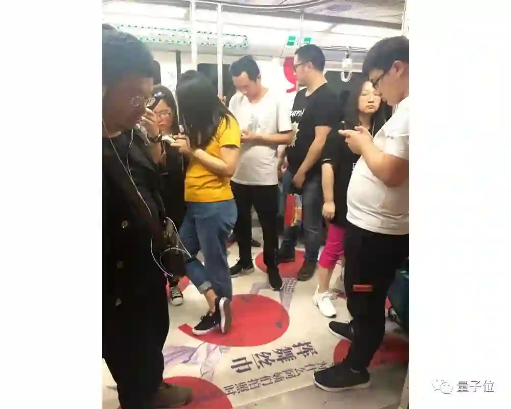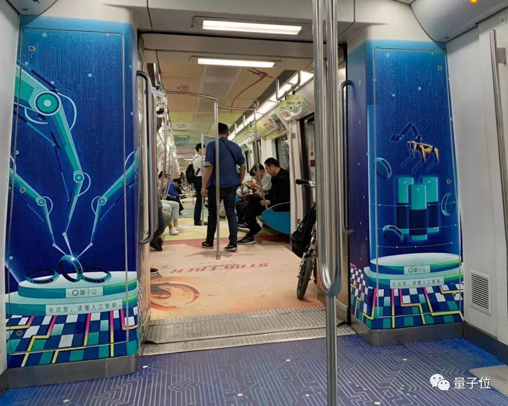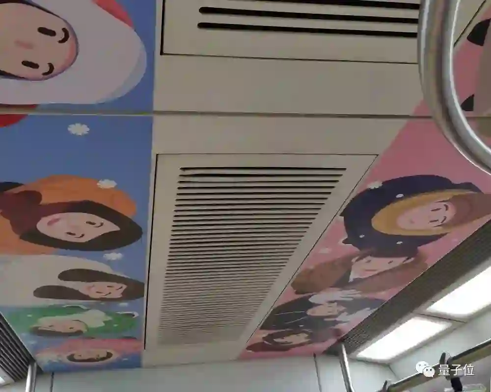 在地铁展览的筹备阶段,我与轻芒的同学接触,讨论量子位的内容定位,空间创意,插画画面要呈现的人工智能应用,再到搜集空间中的文案数据证明,也自己坐地铁实地查看量子位所在车厢的过道位置的构造。经过中间无数次沟通细节到最终执行,历经近半年,对我而言必须要第一天看到这个成果。